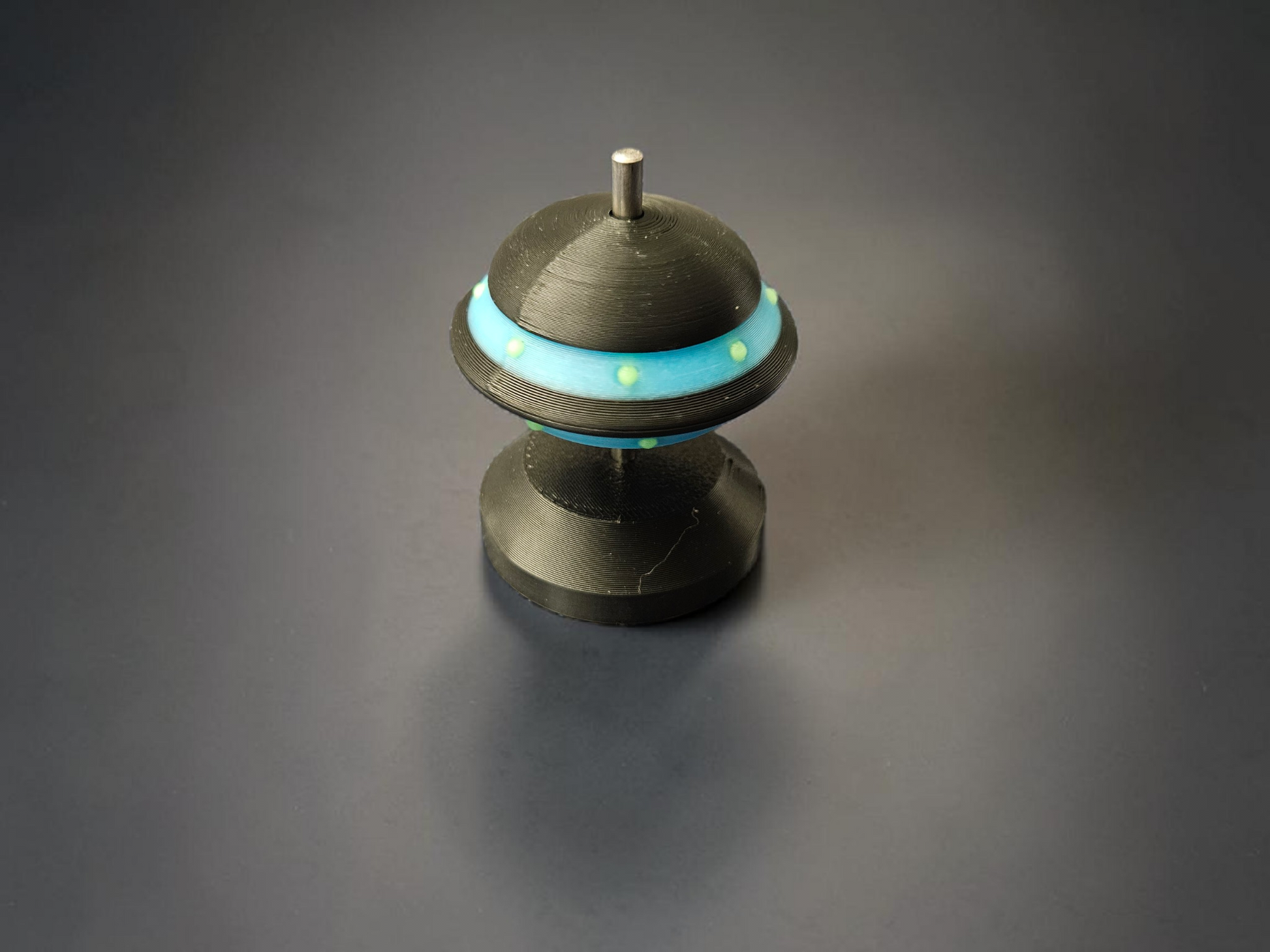 THE UFO: For the sci-fi enthusiast. A sleek, disc-shaped design with tiered layers. When floating on its base, it looks exactly like a craft hovering over a landing pad.